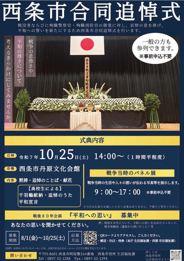 2025/10/11催事情報|2025年10月25日(土)開催|令和7年度西条市合同追悼式|更新しました