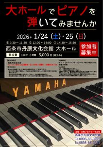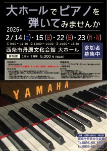 | 催物名 | 大ホールでピアノを弾いてみませんか | ![]() |